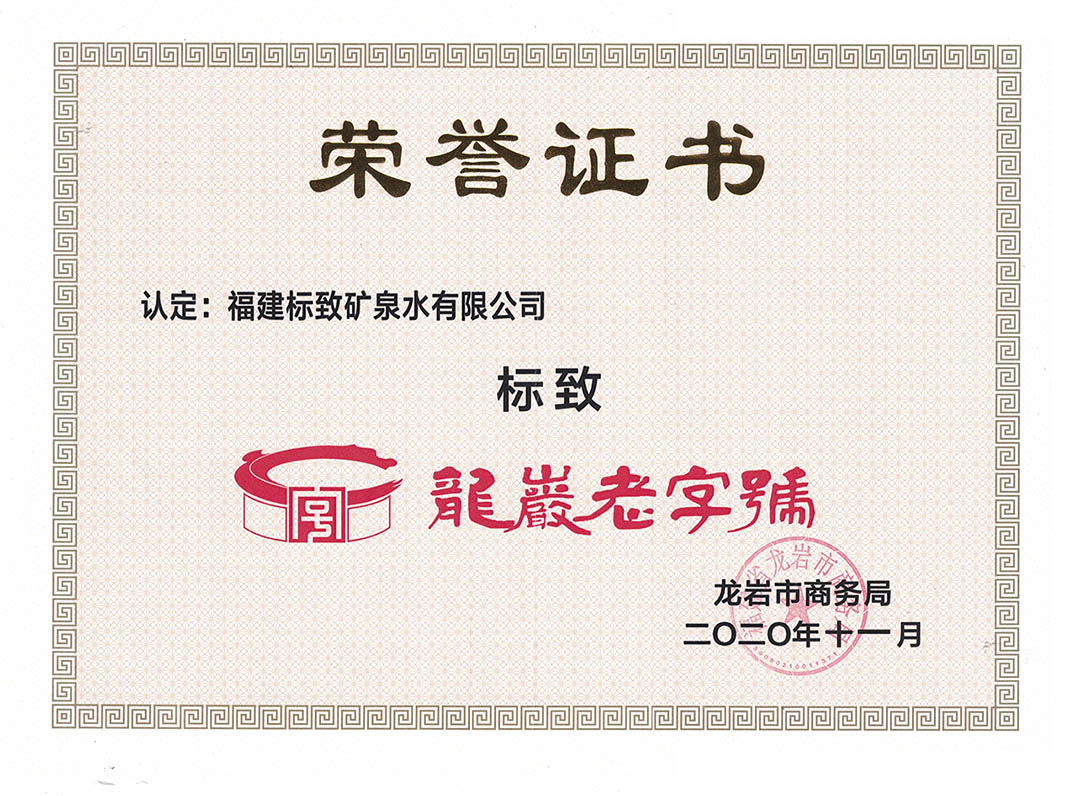 • 2020-11-182020年11月,“標致”被認定為“龍巖老字號”稱號